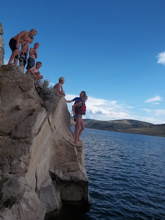 So where were we? Oh-yeah jumping in the lake. Well, I didn't go to the lake on Sunday. Colby, his Dad, & the Boy went will all the kids & extras too.