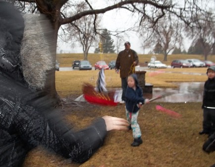 There was a small break in the rain but by the time the pinata was hung it started to snow.